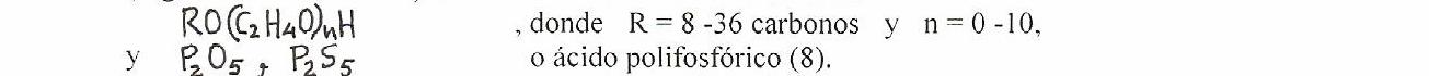 Asimismo, Mariotti patentó un éster fosfórico de un compuesto constituido por un radical alifático (o un radical mezcla de aromático y alifático) y de 1 a 10 moles de óxido de etileno para añadirlo al betún asfáltico y hacer emulsiones (9). También Miller y Vicenzi, con menos deseos de abarcar la mayor parte de la química, patentaron ‘ésteres fosfóricos de nonilfenol de 9 moles de óxido de etileno como aditivos para asfalto’ (10).