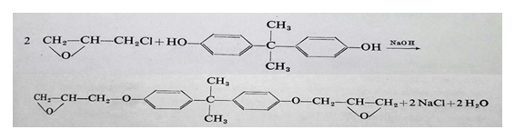 Desde 1940 se conocen las reacciones entre la epiclorhidrina y los fenoles polihídricos, de los cuales el más empleado fue el difenilolpropano, llamado bisfenol A (BPA en sus siglas inglesas). Este reactivo se obtiene mediante la condensación de un mol de acetona con dos moles de fenol en presencia de un catalizador ácido. Su fórmula es: OHC6H4C(CH3)2C6H4OH. Si se hace reaccionar un mol de BPA con dos moles de epiclorhidrina a 150º C y NaOH como catalizador, se obtiene con alto rendimiento una resina epoxi con dos epóxidos terminales por molécula: